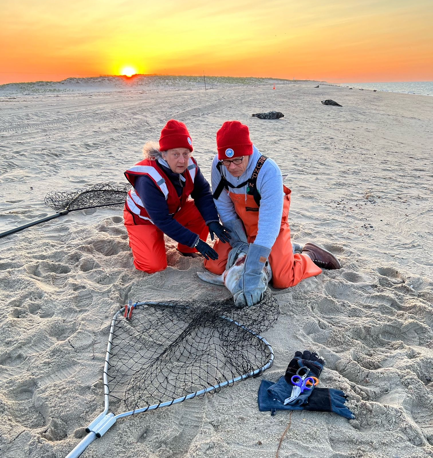 In the case of larger strandings, we call in assistance from NOAA and the International Fund for Animal Welfare located on the Cape. If an animal can be rehabilitated, we transport, via Hy Line Cruises, to National Marine Life Center.